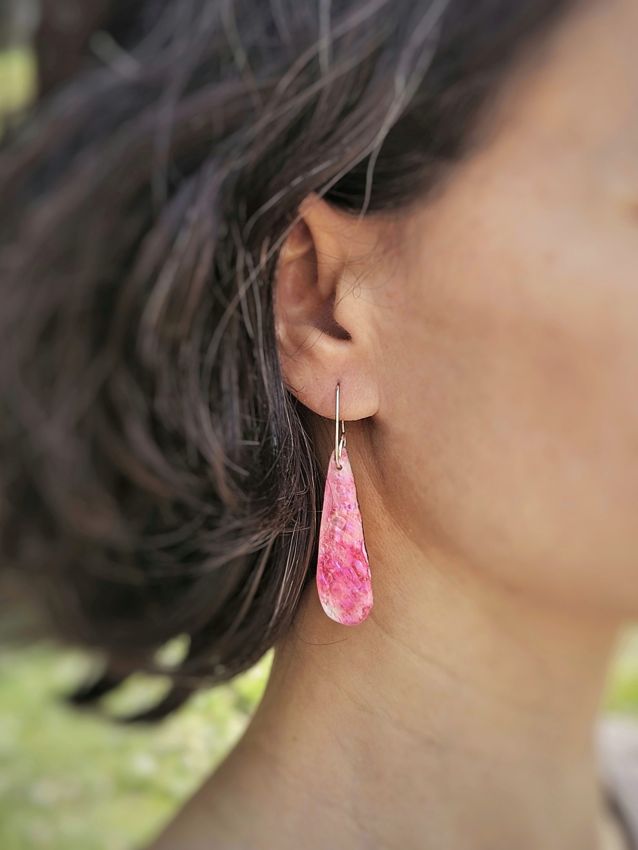 Pendientes Lágrima grande rosa nácar de CD